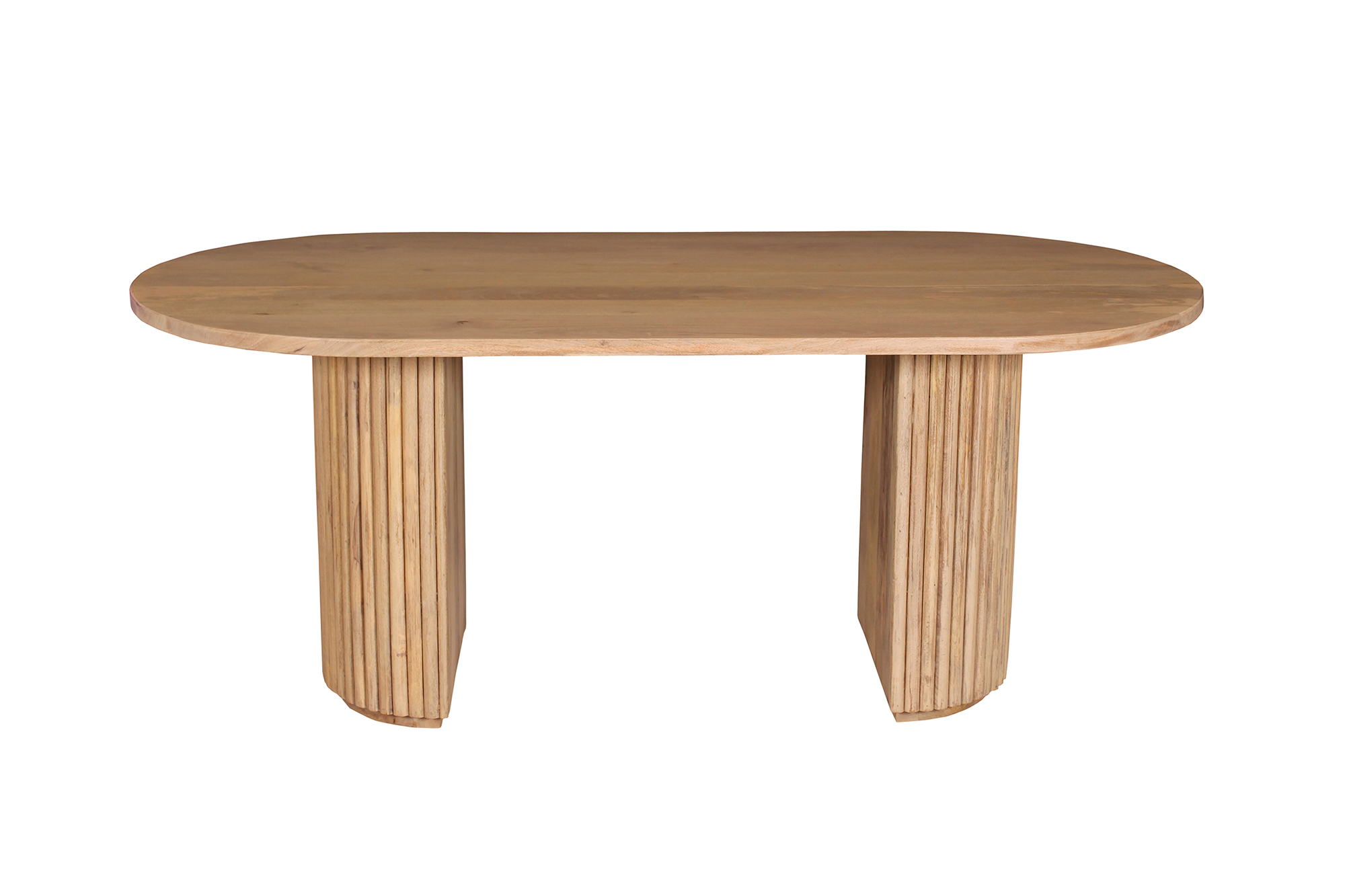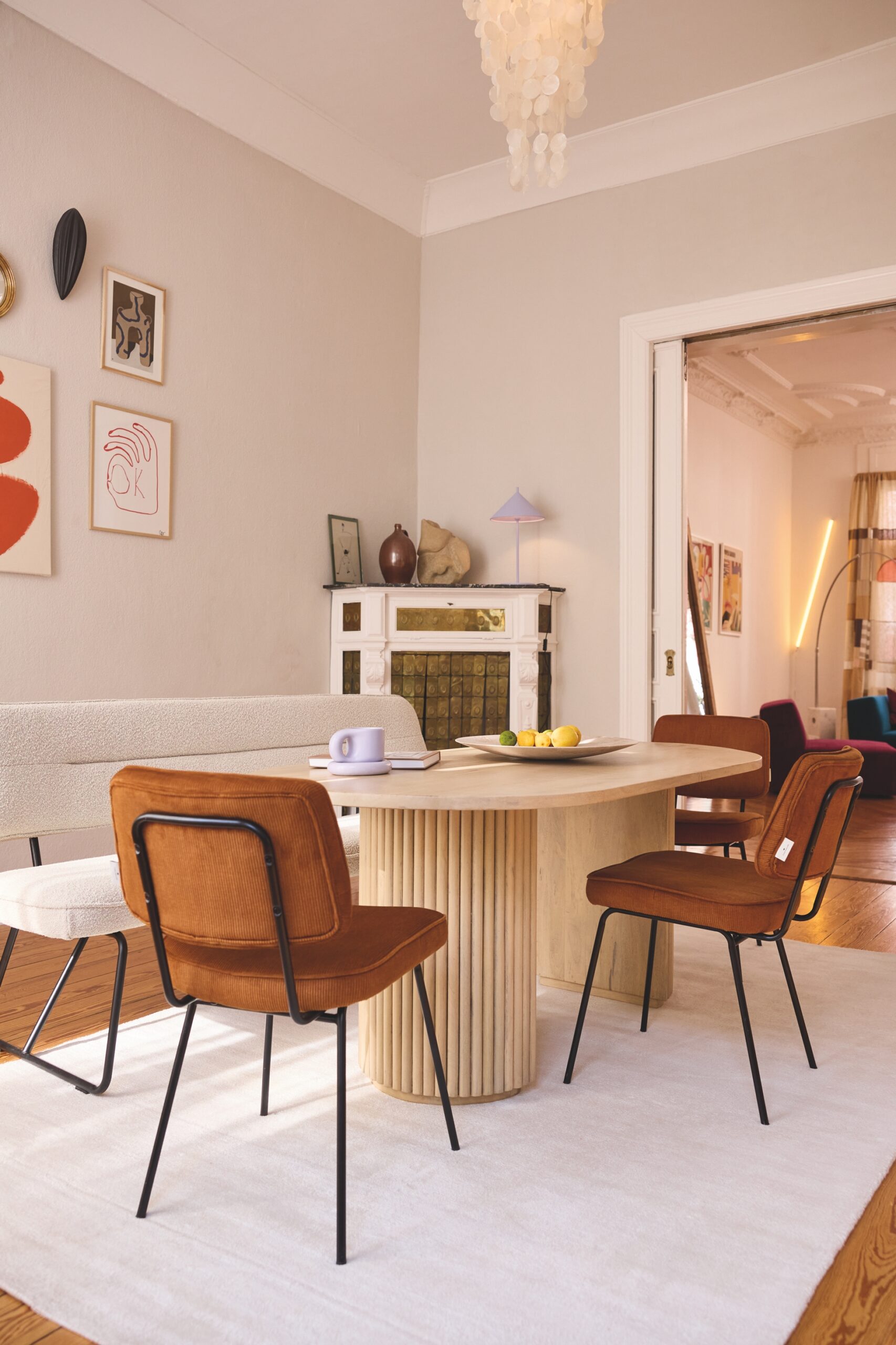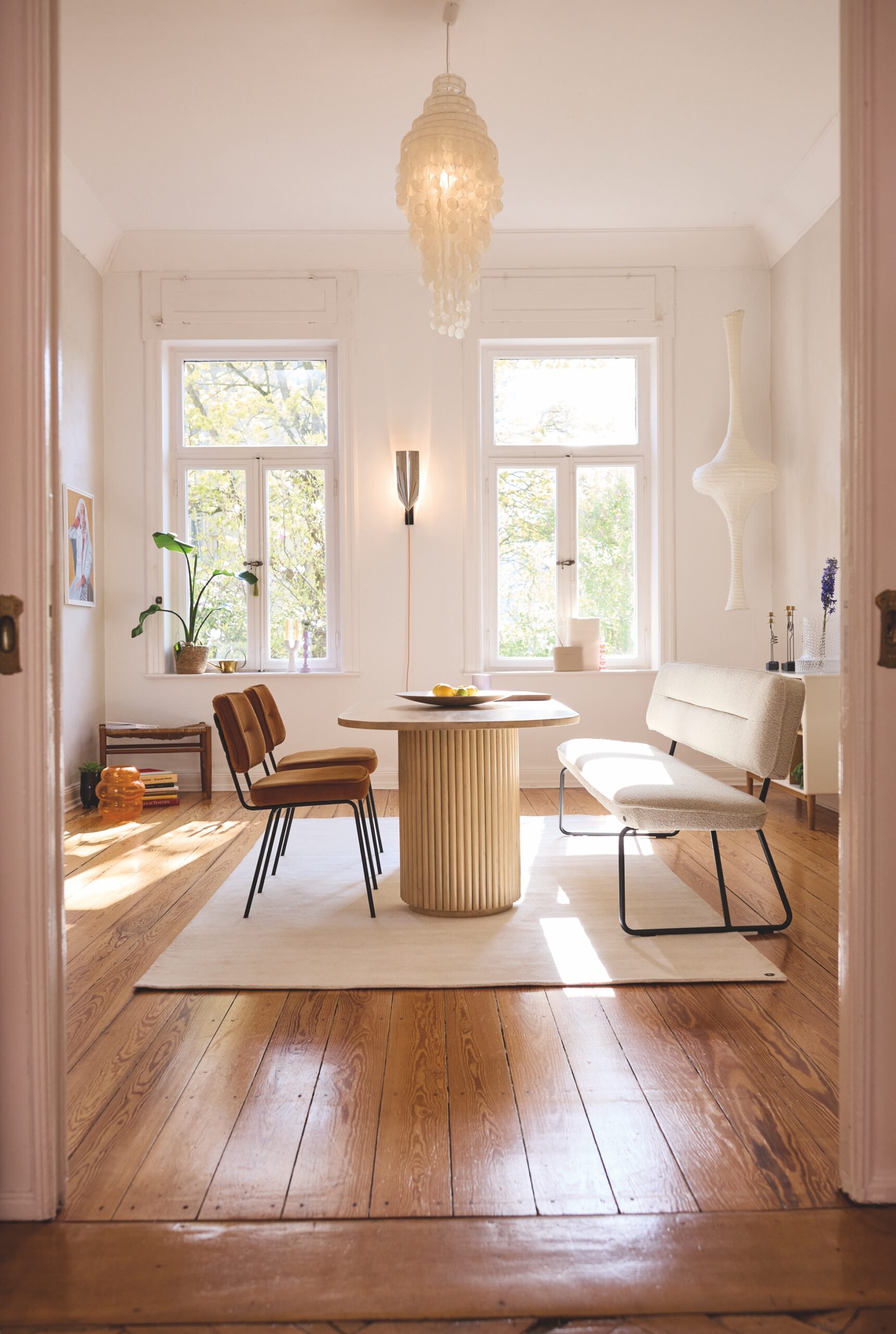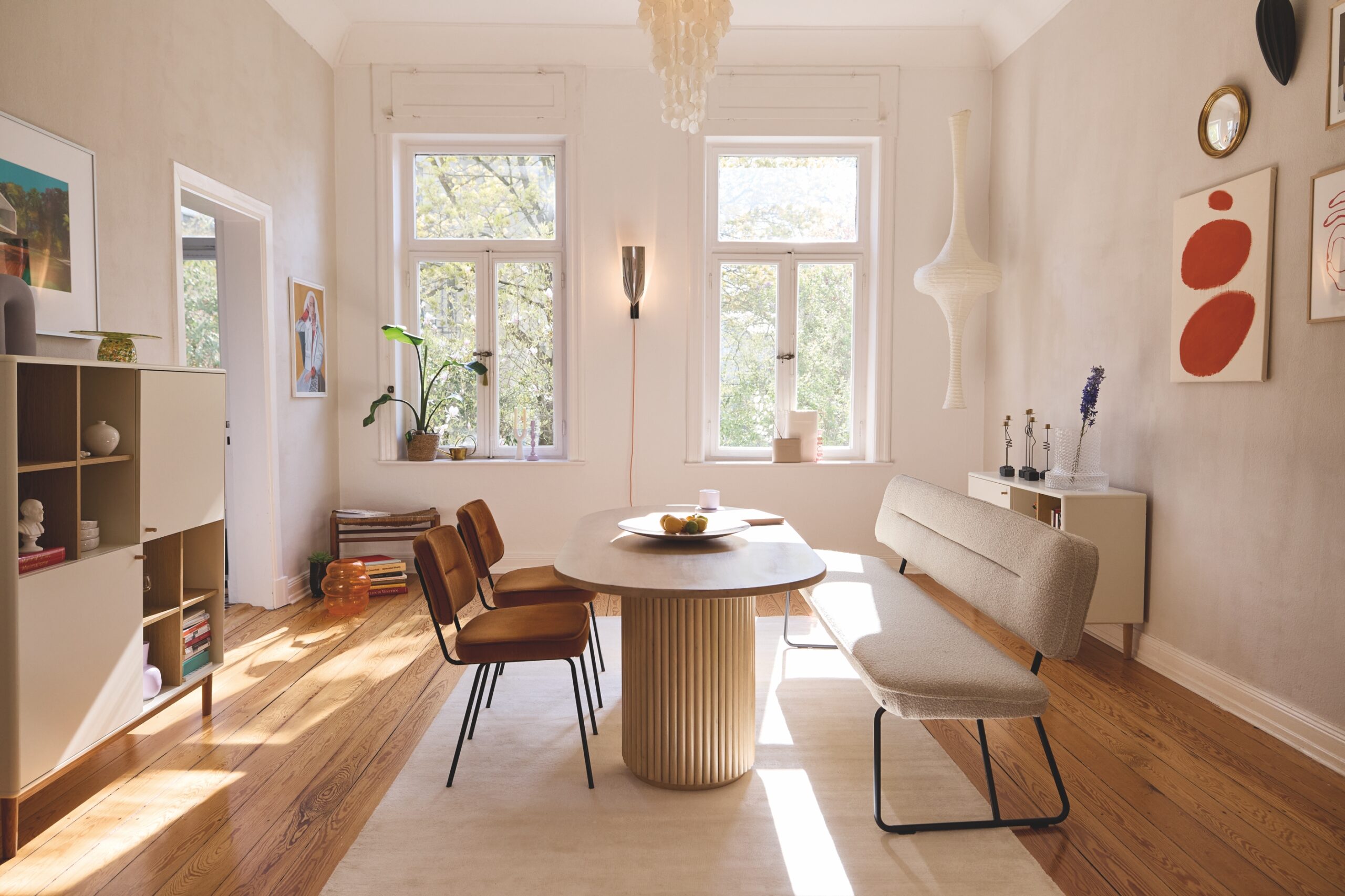Besticht durch sein Design: Der hochwertige Esstisch »T-RIBBED TABLE LARGE« aus dem Hause TOM TAILOR wertet den Essbereich optisch sowie praktisch auf. Er besteht aus FSC®-zertifiziertem Mangoholz und wurde mit viel Liebe zum Detail verarbeitet. Sowohl die abgerundete Tischplatte als auch die extravaganten Tischbeine im Ribbed-Look machen ihn zu einem Hingucker. Durch die Farbgebung und Optik fügt er sich harmonisch in viele Einrichtungsstile ein. Das Tischmöbel erweitert die Wohnküche oder das Esszimmer um eine stylische Komponente, an der gerne Zeit verbracht und gegessen wird. Neben stylischer Mode entwickelt TOM TAILOR seit einigen Jahren auch Möbel im Premium Segment. Dabei setzt die Lifestyle Marke auf einen jungen und erfrischenden Stil: Das vielseitige Möbelsortiment hat für jeden Raum etwas zu bieten und überzeugt mit lässigem, urbanem Design. Die Gestaltung, insbesondere die Kombinationen von Materialien, Formen und Farben sind inspiriert von der aktuellen Mode. Immer am Puls der Zeit: Mit Möbeln von TOM TAILOR gelingt es, sich genauso modern einzurichten, wie zu kleiden. T-Ribbed Table Large Abstand zwischen den Tischbeinen: ca. 73 cm, Plattenstärke: ca. 3 cm, Maße Tischbein: ca. 45×24 cm, max. Belastbarkeit: 100 kg Ovaler Esstisch im modernen Design Mit Tischbeinen im extravaganten Ribbed-Look Gefertigt aus natürlichem Mangoholz Plattenstärke ca 30 mm In hochwertiger Verarbeitung